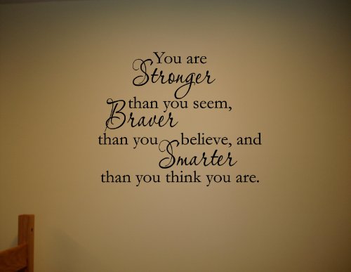 Read more about YOU ARE STRONGER THAN YOU SEEM, BRAVER THAN YOU BELIEVE, AND SMARTER THAN YOU THINK Vinyl wall quotes stickers sayings home art decor decal Review...